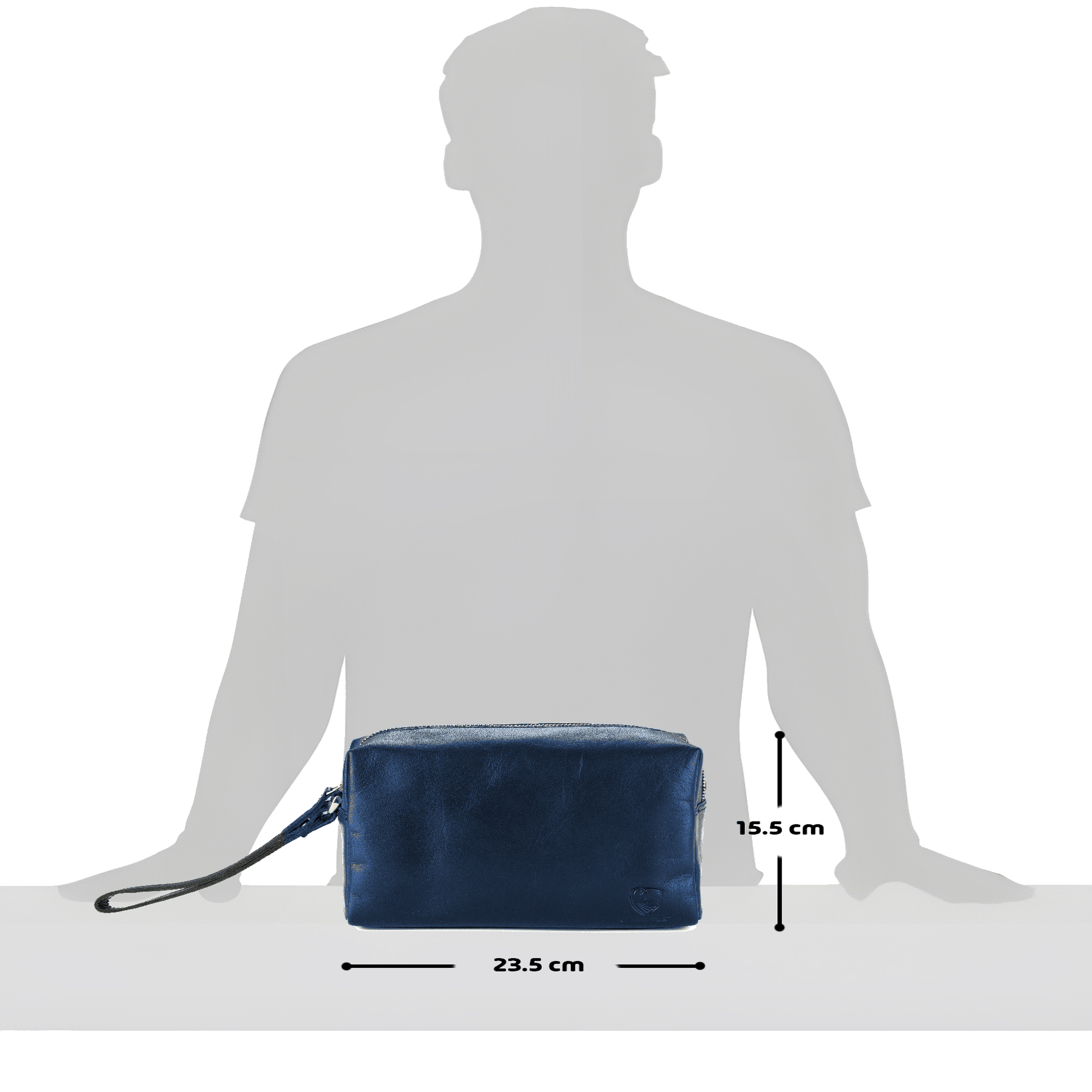 Handlich mit genug Stauraum: Mit ihren Maßen von 23,5 x 15,5 x 8 cm bietet diese stilvolle Waschtasche die perfekte Balance zwischen Funktionalität und Eleganz. Das Design ist bewusst schlicht gehalten.